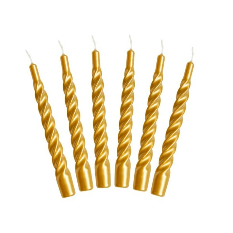 Twistede Lys - Candles with a twist, 1 stk./ 6 stk. Guld 21 cm